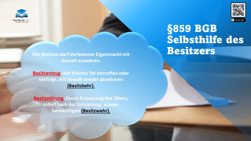 Selbsthilfe des Besitzers gemäß §859 BGB