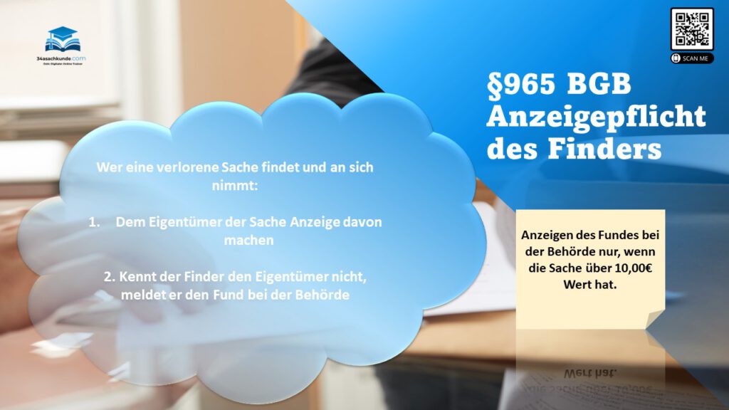 Anzeigepflicht des Finders gemäß §965 BGB